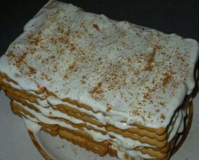 - De cake zonder bakken van koekjes en gecondenseerde melk is klaar!