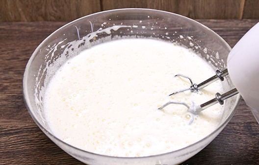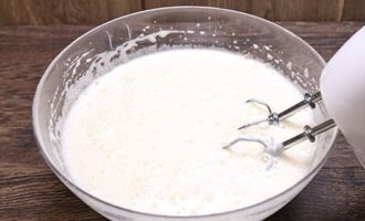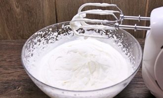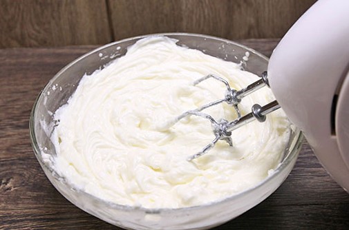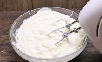 Om de room te bereiden, koelt u de room in de koelkast en klopt u vervolgens grondig met een mixer op volle dichtheid.
