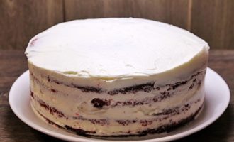 - Leg een korst op een schaal en bedek deze royaal met een van je favoriete room - kwark, boter of een andere witte room. Zet de volgende cake op en herhaal de procedure. Doe dit totdat de cakes op zijn; de bovenkant en zijkanten van de cake kunnen ook worden ingevet met room en voorzichtig worden gladgestreken om de cake mooi glad te maken.