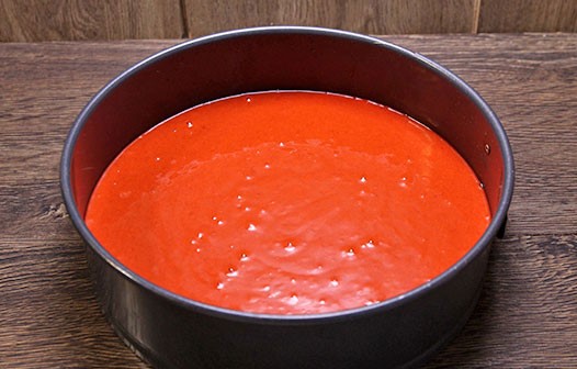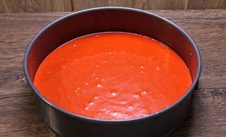 - Neem een splitvorm met een diameter van 20-22 centimeter en bekleed deze met perkamentpapier. Bestrijk vervolgens de pan met boter en bestuif de pan met bloem. Giet de helft van het deeg in een vorm en zet deze maximaal een half uur in de oven op 180 graden.