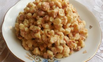 Hier moet je een beetje aan de test sleutelen, maar het is de moeite waard. Door de afwezigheid van eieren in het deeg krijg je een krokant koekje. Het kan met de hand worden gevormd, of je kunt het door een vleesmolen draaien.
