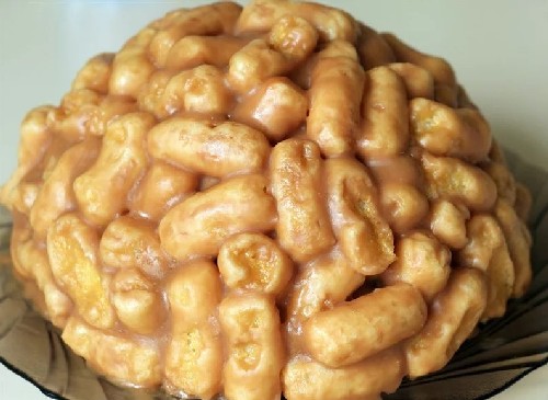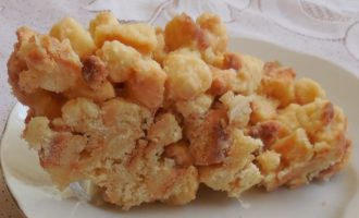 - Doe de stukjes deeg in een diepe kom, overgiet met honingsaus.
