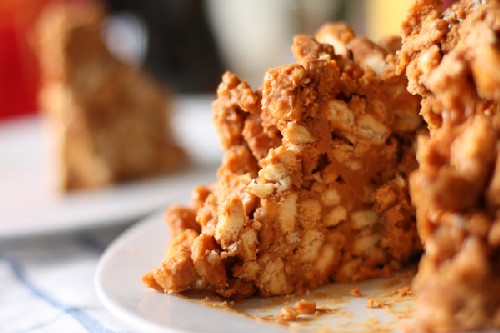 - Koel de afgewerkte koekjes een beetje en terwijl ze nog warm zijn, breek ze in grove kruimels.