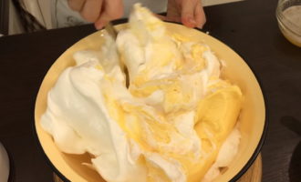 - Combineer dooiers en eiwitten samen, roer.