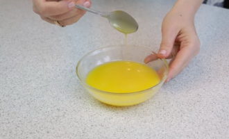 - We combineren water met gelatine, wachten 20 minuten totdat het opzwelt. Dan zetten we op het fornuis en houden het vuur totdat de gelatine oplost. Wij koelen het af.