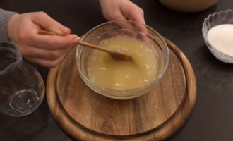 - Meng voor het deeg zachte boter, kristalsuiker (220g) in een diepe kom, roer de honing erdoor. We zetten een waterbad op. Als de massa enigszins is gesmolten, voeg je er melk en eieren aan toe. Wij mixen. De massa moet licht beginnen te schuimen.