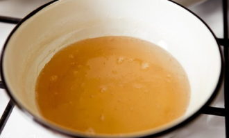 - Laten we het glazuur maken. Meng in een kleine pan alle benodigde ingrediënten, zet op het fornuis en kook op laag vuur, zonder het licht aan de kook te brengen.