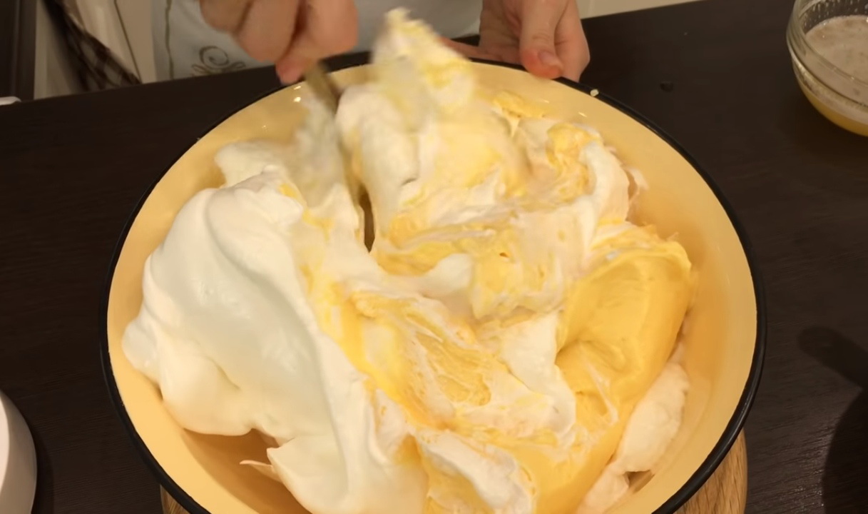 - Combineer dooiers en eiwitten samen, roer.