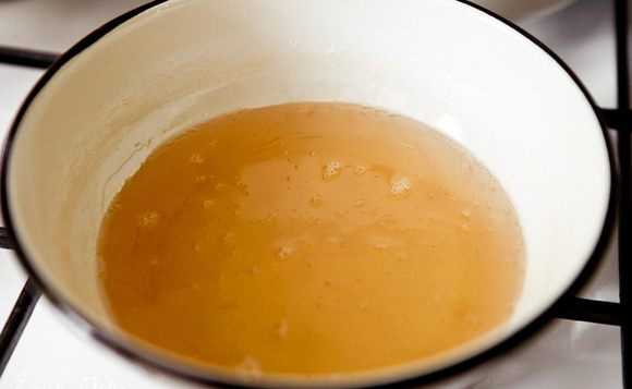 - Laten we het glazuur maken. Meng in een kleine pan alle benodigde ingrediënten, zet op het fornuis en kook op laag vuur, zonder het licht aan de kook te brengen.