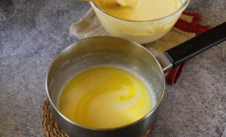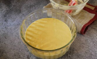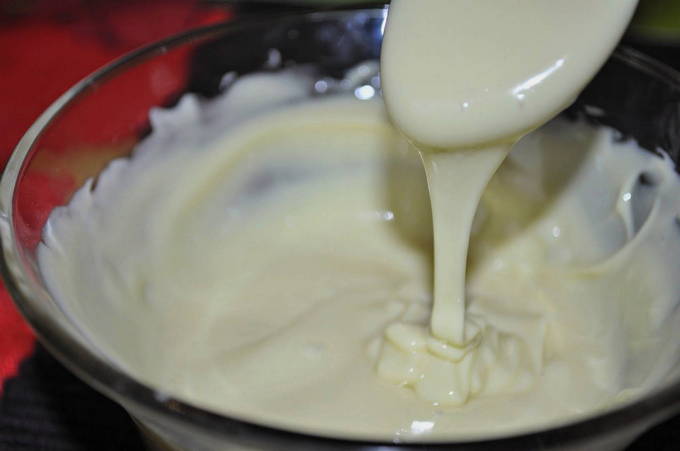 - We bereiden de impregnering voor cakes van eenvoudige en gecondenseerde melk. Roer tot een gladde massa.