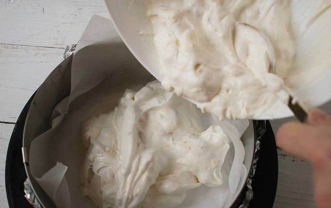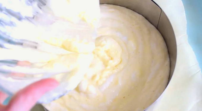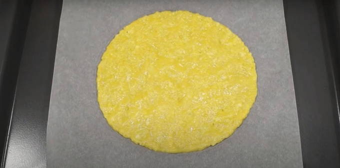 - Doe de resulterende massa in een vorm bedekt met perkamentpapier.