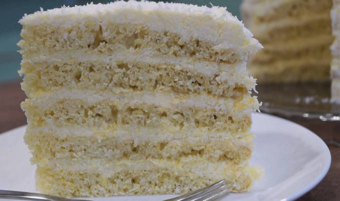 Als basis voor een klassieke kokoscake bereiden we de meest delicate vanillebiscuit in warme melk. Het snijdt goed en trekt redelijk snel in. De cake is heel snel klaar, als je geen rekening houdt met de tijd voor het afkoelen van de cakes en het afgewerkte dessert.