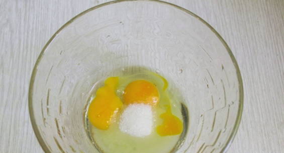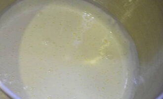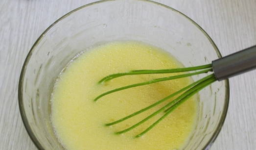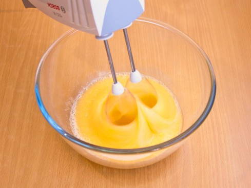 - Klop in een kom eieren en suiker 5-7 minuten.