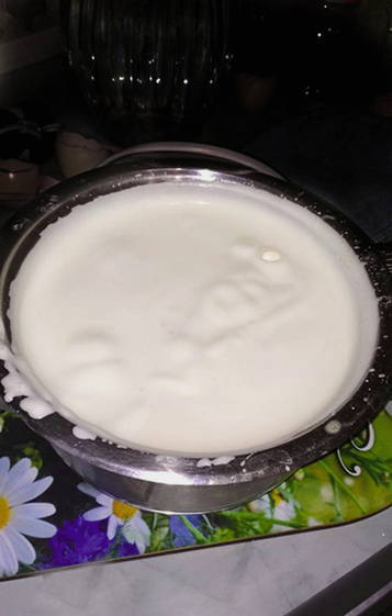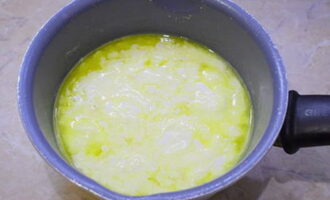 Giet melk in een pan en voeg boter toe. Combineer ingrediënten en breng aan de kook. De massa moet volledig homogeen worden.