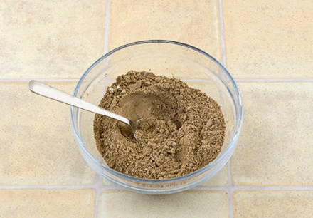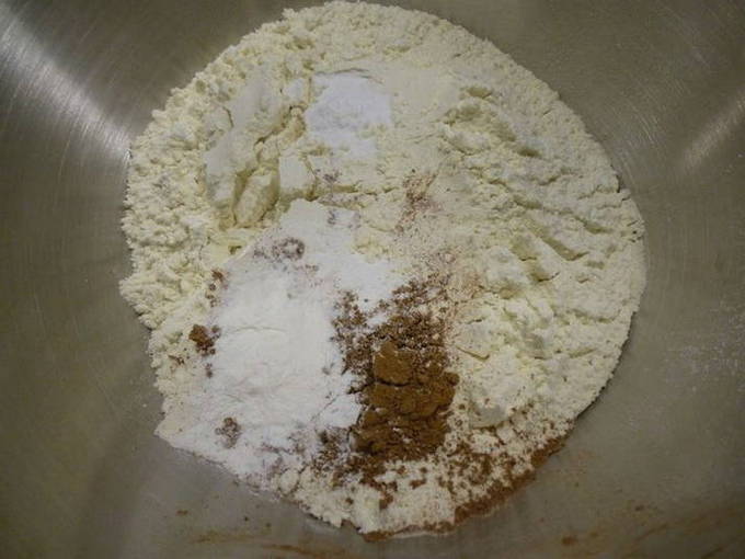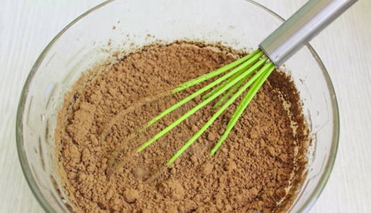 - Meng in een kom de gezeefde bloem, cacao en bakpoeder.