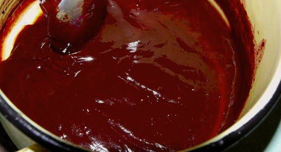 - Chocoladeroom maken. Giet de room in een pan, voeg de poedersuiker toe en verwarm de resulterende massa, maar kook niet. Haal daarna de pan van het vuur en voeg de gehakte chocolade toe, roer de inhoud van de pan totdat de chocolade volledig is opgelost.