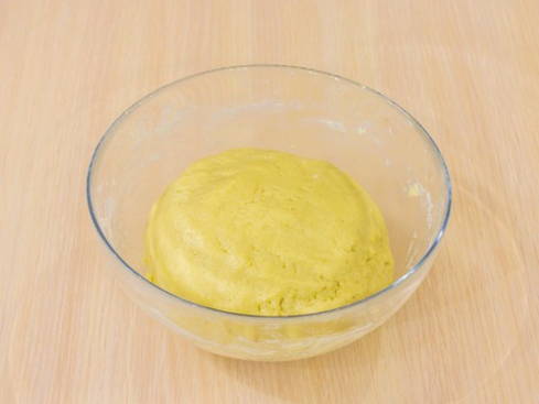 - Zeef vervolgens de bloem in een kom en kneed tot een homogeen deeg.