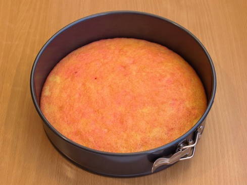 - Leg het perkamentpapier op de bodem van de vorm, giet het deeg erin en plaats de vorm in de oven. Bak de biscuitgebak 20-30 minuten op 180 graden. Haal de cake vervolgens uit de vorm en laat afkoelen.