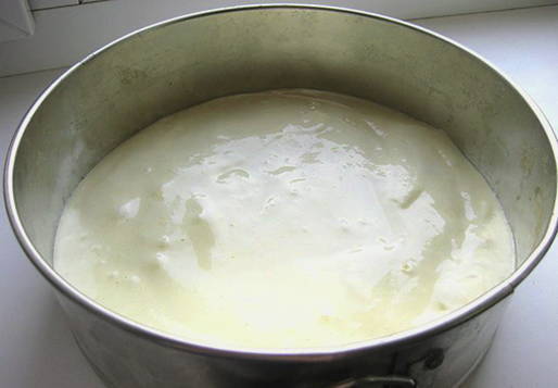 - Snijd het koekje in meerdere lagen. Meng water en suiker, breng het mengsel aan de kook, haal het dan onmiddellijk van het vuur en laat afkoelen. Week de cakes met de resulterende siroop.