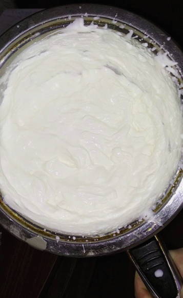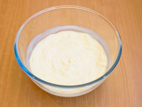 - Bereid de crème voor. Klop de zure room en suiker los.