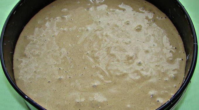 - Voeg bloem toe aan de eiermassa en kneed een dik deeg. Giet het deeg in een ingevette bakvorm. Bak de cake 20-25 minuten op 180 graden.