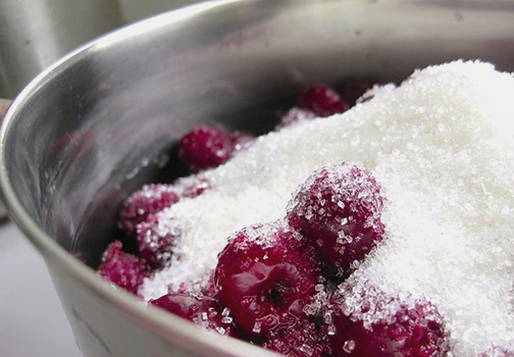 - Bereid je kersen voor. Giet 100 gram suiker met kokend water en roer tot de suiker is opgelost. Giet de resulterende siroop over de kers en laat 2-3 uur staan.