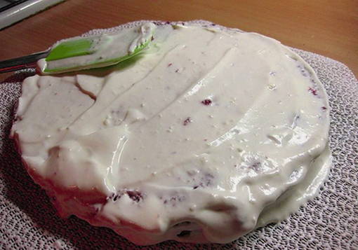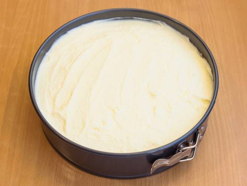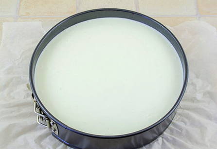 - Doe de wrongelmassa op het koekje en zet de vorm 3-4 uur in de koelkast.