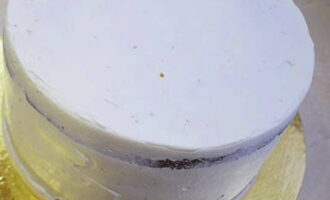 Verzamel de cake, zijkanten en bovenkant en smeer in met botercrème. Zet de cake enkele uren in de koelkast om te weken. Het blijkt erg mals en sappig te zijn.