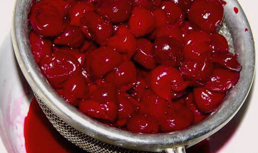 - Gooi de kersen in een vergiet, giet de cognac in een aparte container.