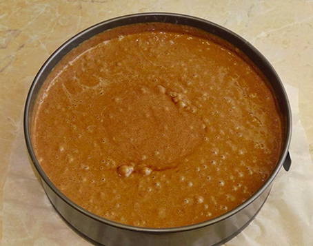 - Leg perkament op de bodem van de vorm, vet de vorm zelf in met boter. Giet 1/3 van het deeg in de vorm en bak de cake 20-40 minuten op 180 graden. Bak nog 2 cakes op dezelfde manier. Laat alle cakes volledig afkoelen.