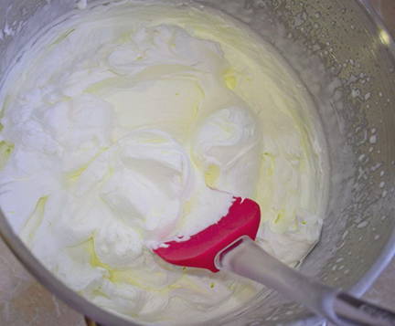 - Voeg in meerdere keren de mascarpone toe aan de slagroom en roer de room door met een garde. Plaats de afgewerkte room 3-4 uur in de koelkast.