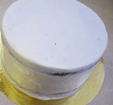 Verzamel de cake, zijkanten en bovenkant en smeer in met botercrème. Zet de cake enkele uren in de koelkast om te weken. Het blijkt erg mals en sappig te zijn.