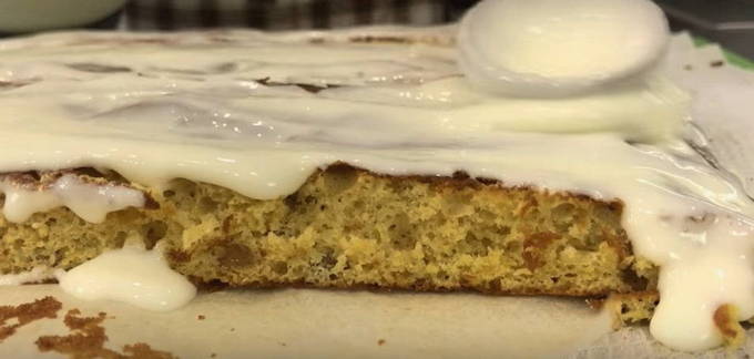 Dankzij kefir in het deeg zijn de cakes poreus en brokkelig, en een eenvoudige zure room geeft de cake een delicate en aangename smaak.