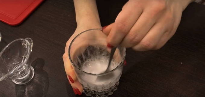 We doven de frisdrank in een glas met azijn en gieten het in een kom deeg.
