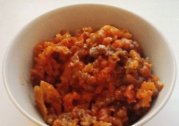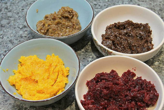 - Combineer noten met pruimen, voeg een snufje suiker toe. Als het gedroogde fruitmengsel dik genoeg is, voeg dan een beetje heet water toe en roer.