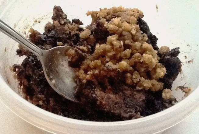 Snijd de taart in reepjes. Maal de restjes met je handen of met een blender, voeg het zure roommengsel toe en mix tot een gladde massa. We gaan even weg.