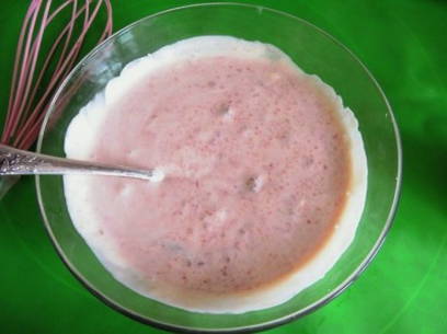 - Voeg jam en zure room toe aan het resulterende mengsel. Klop opnieuw tot een gladde massa.