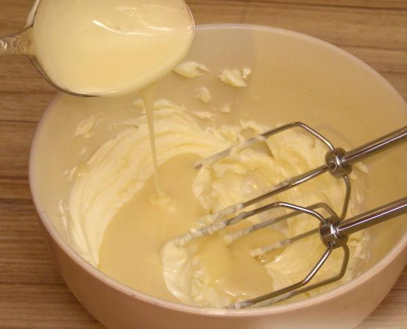 - Terwijl de cakes bakken, gaan we naar de room. We nemen boter en kloppen het met een mixer tot het wit is. Voeg gecondenseerde melk en poedersuiker toe aan de boter. Slaan tot dat het glad is. Wrijf de citroenschil op een rasp. Voeg het samen met het citroensap toe aan het mengsel. Klop met een mixer tot een luchtig geheel.