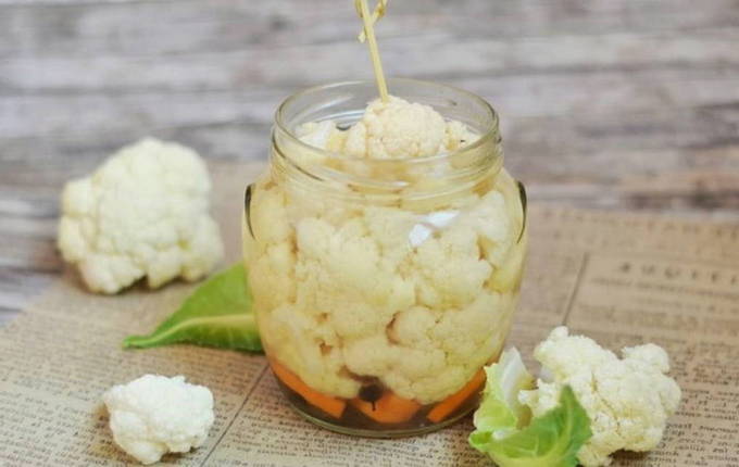 Om de bloemkool voor de winter sappig en krokant te maken, kook je hem in een pot met azijn. Een koud voorgerecht zal een geweldige aanvulling zijn op uw thuistafel.