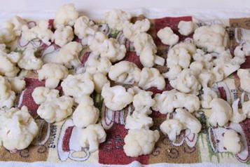 - We wassen de bloemkool onder water en verdelen deze vervolgens in bloeiwijzen.