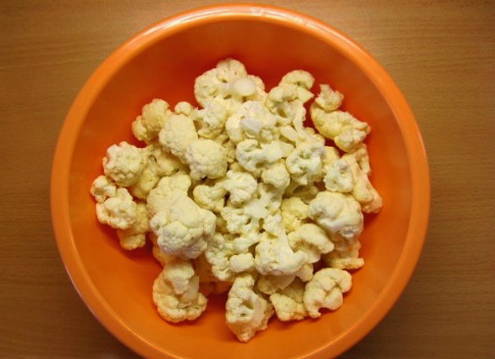 - We wassen de bloemkool en verdelen deze in kleine bloeiwijzen.