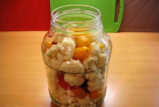 Een stapsgewijs recept voor het maken van bloemkool voor de winter zonder azijn