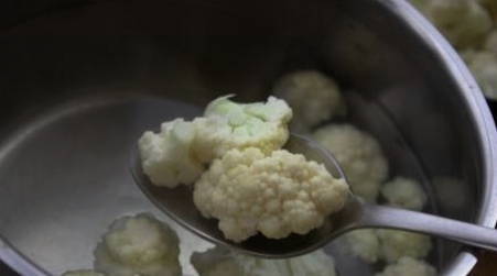 - Verdeel de bloemkool in bloeiwijzen en laat ze 10-15 minuten in koud water weken.