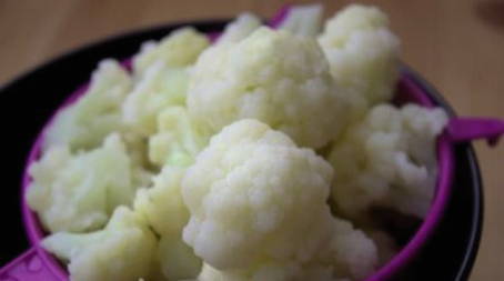 - We spoelen de bloemkool grondig onder stromend water en verdelen hem vervolgens in kleine bloeiwijzen.