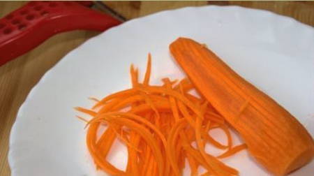 - Schil en rasp de wortelen voor Koreaanse wortelen.