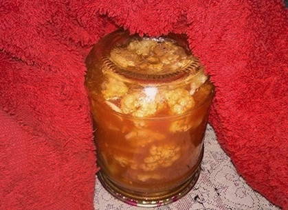 Een interessant en smakelijk idee voor uw winterbereidingen is bloemkool in tomatensaus. De afgewerkte traktatie wordt geserveerd als een koude snack. Verwen uzelf en uw dierbaren aan de eettafel.