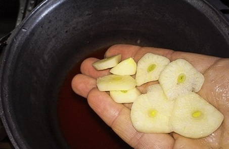 - Doop kleine stukjes knoflook in de massa voor smaak.