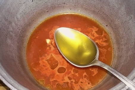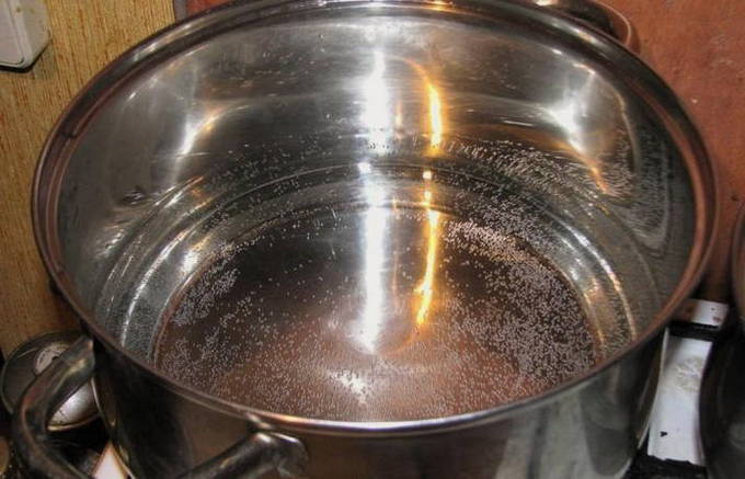 - Giet de vloeistof voorzichtig in een pan. We koken het met suiker, zout, kruiden en azijnessentie.