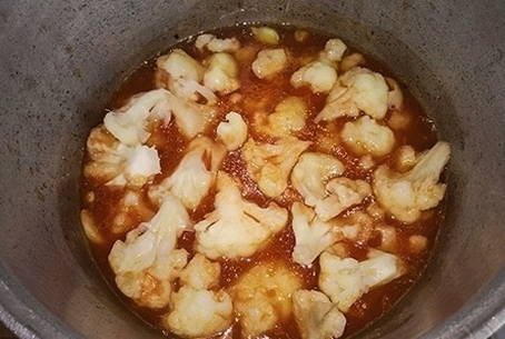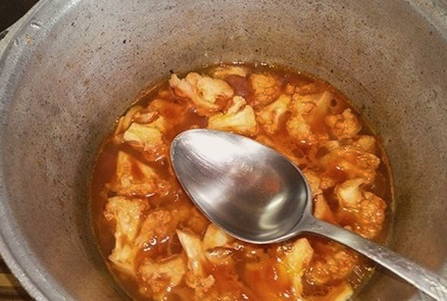 - Heldere bloemkool in tomatensaus is klaar. Bewaar het!