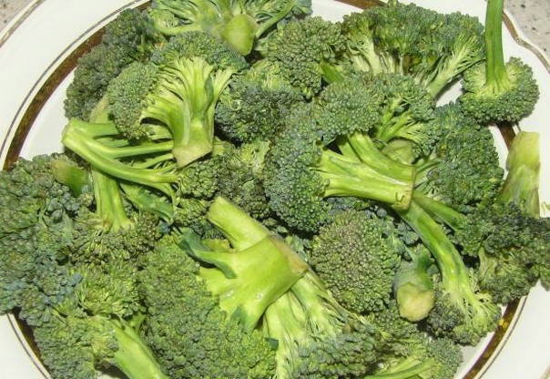 - Vervolgens laten we de bloeiwijzen drie minuten in kokend water zakken. We gooien het ingrediënt weg in een vergiet en spoelen het af onder water.